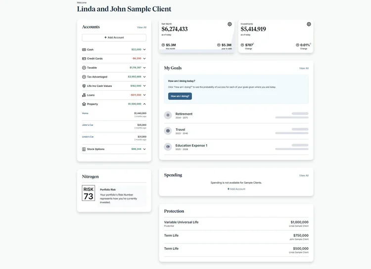 Nitrogen (formerly Riskalyze) helps align your comfort with your portfolio’s behavior making sure your investments feel like you.